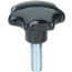 Av termoplast. Med gjenget bushing henholdsvis gjenget tapp.